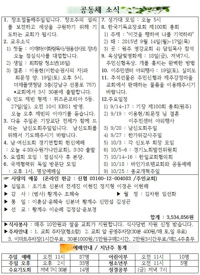 2015³â 9¿ù 6ÀÏ Ã¢Á¶Àý ù°ÁÖÀÏ