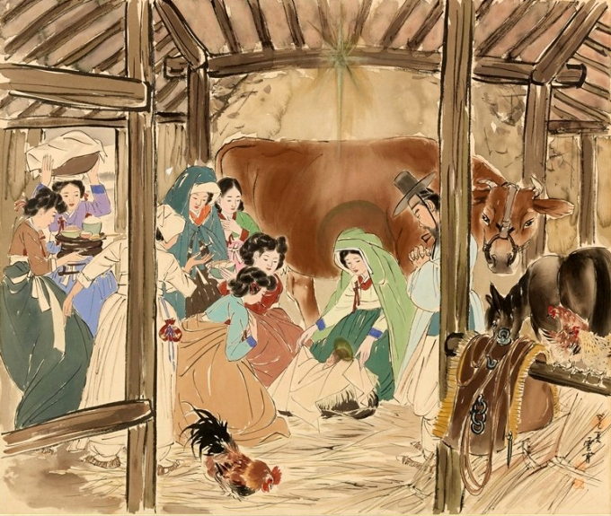 20201225. ¿îº¸ ±è±ââ, ¾Æ±â ¿¹¼öÀÇ Åº»ý, 76*63cm, ºñ´Ü¿¡ ä»ö, 1951³â, °³ÀÎ ¼ÒÀå