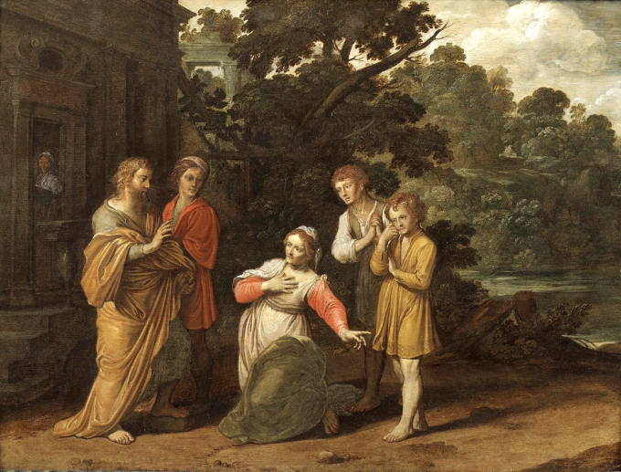 20210124. ¾á ÅÞ³ª°Ö(1584~1631/³×´ú¶õµå), ¿¤¸®»ç¿Í µÎ ¾ÆµéÀÌ ÀÖ´Â °úºÎ, 34*45cm, 1624³â