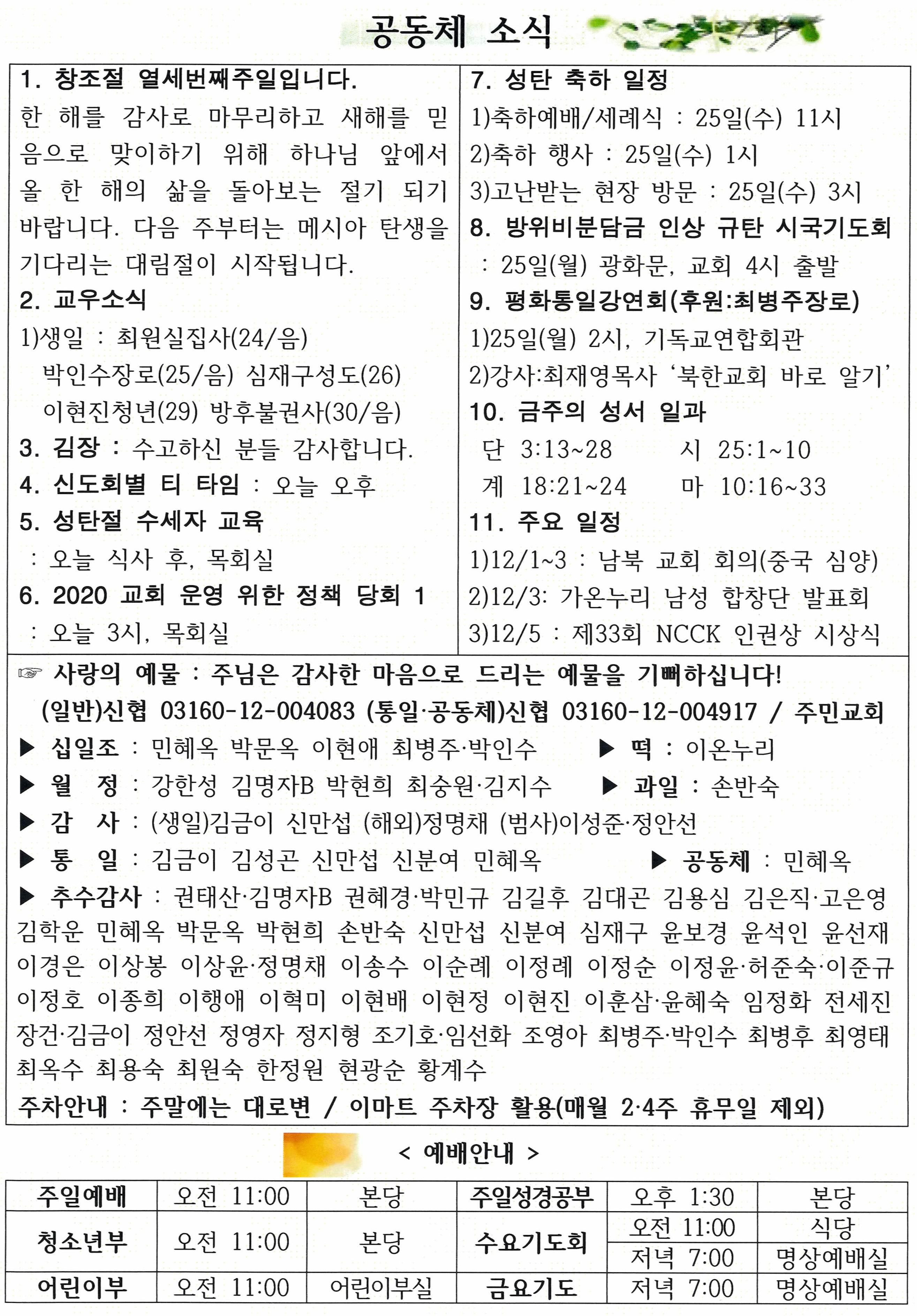 2019³â 12¿ù 1ÀÏ ´ë¸²Àý ù° ÁÖÀÏ