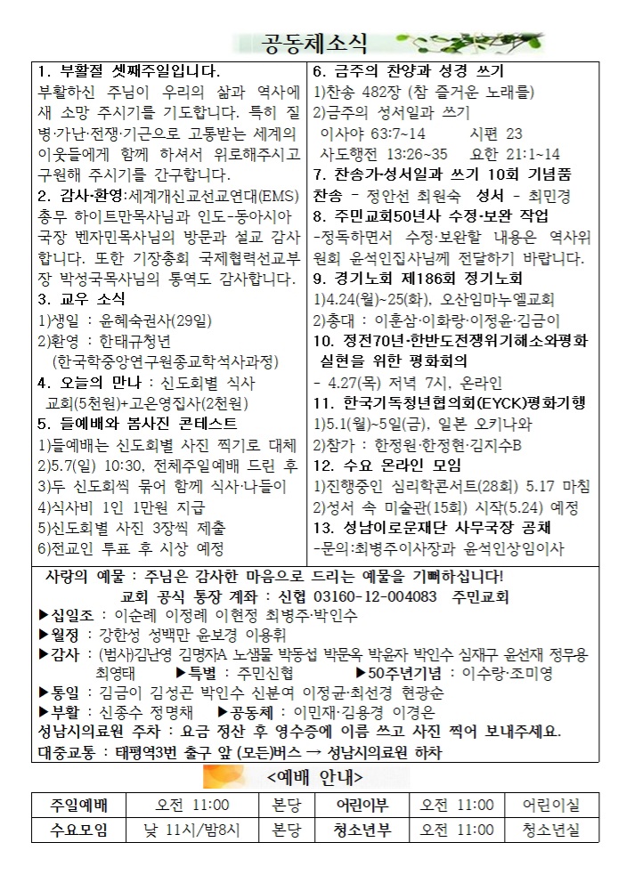 2023.05.07 ºÎȰÀý ´Ù¼¸Â° ÁÖÀÏ¿¹¹è