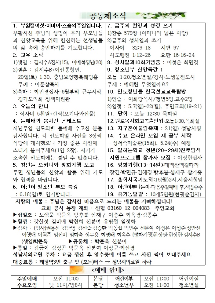 2023.05.07 ºÎȰÀý ´Ù¼¸Â° ÁÖÀÏ¿¹¹è