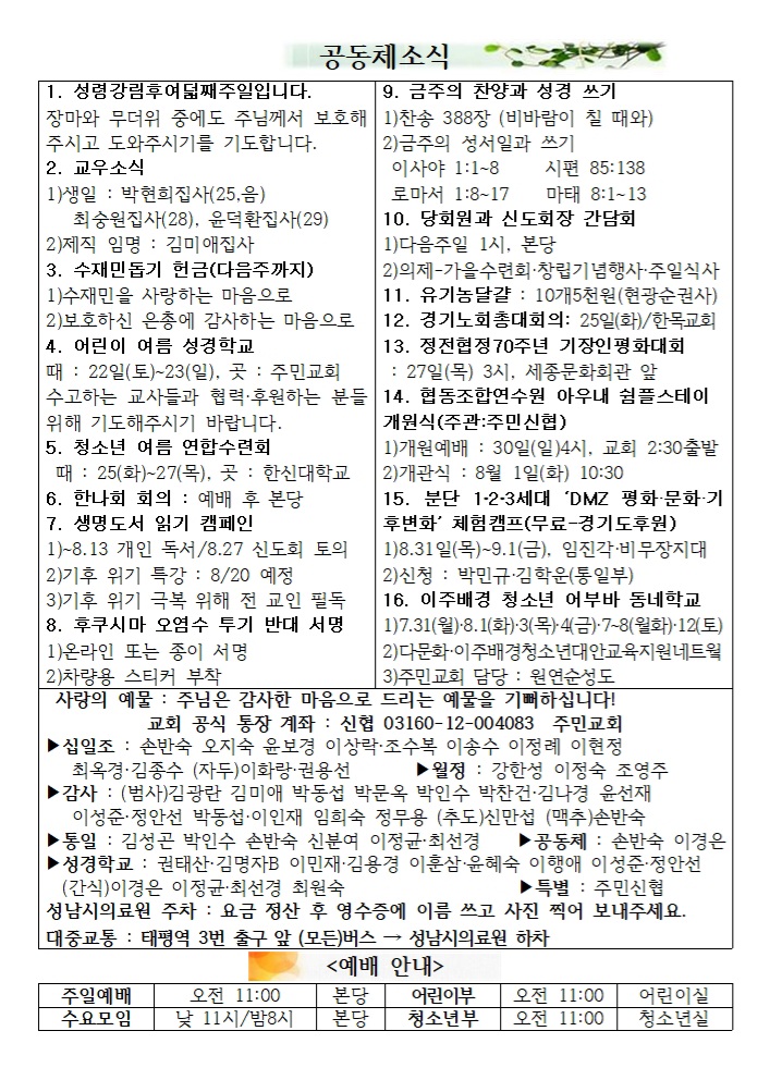 2023.08.13. ¼º·É°¸²ÈÄ ¿ÇѰ. ÆòÈÅëÀÏÁÖÀÏ¿¹¹è