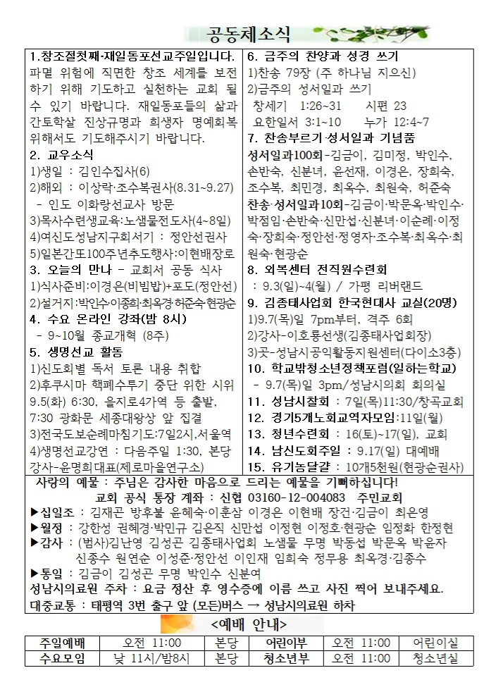 2023.09.17. ³²½ÅµµÈ¸ ÁÖÀÏ¿¹¹è