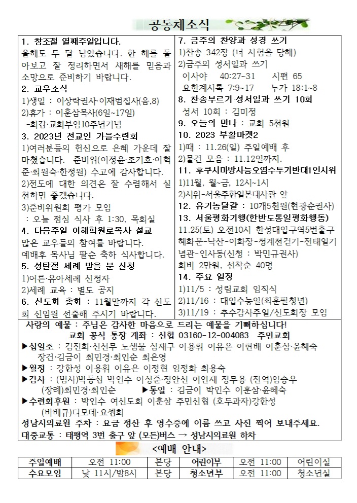 2023.10.22. À̴ܰæ°è ÁÖÀÏ¿¹¹è