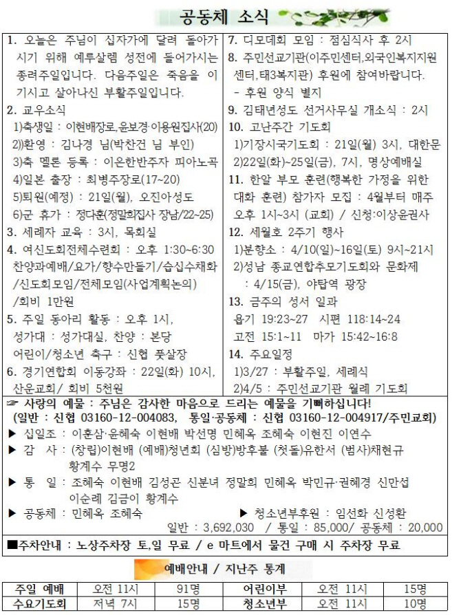2016³â 3¿ù 6ÀÏ »ç¼øÀý³Ý°ÁÖ/¼¼°è±âµµÁÖÀÏ