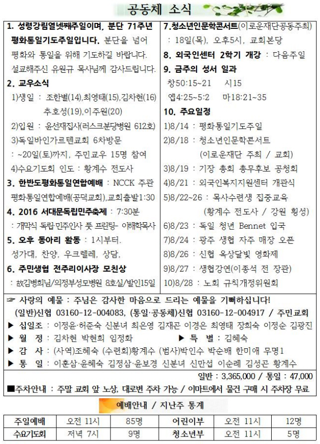 2016³â 8¿ù 14ÀÏ ÆòÈÅëÀϱ⵵ÁÖÀÏ