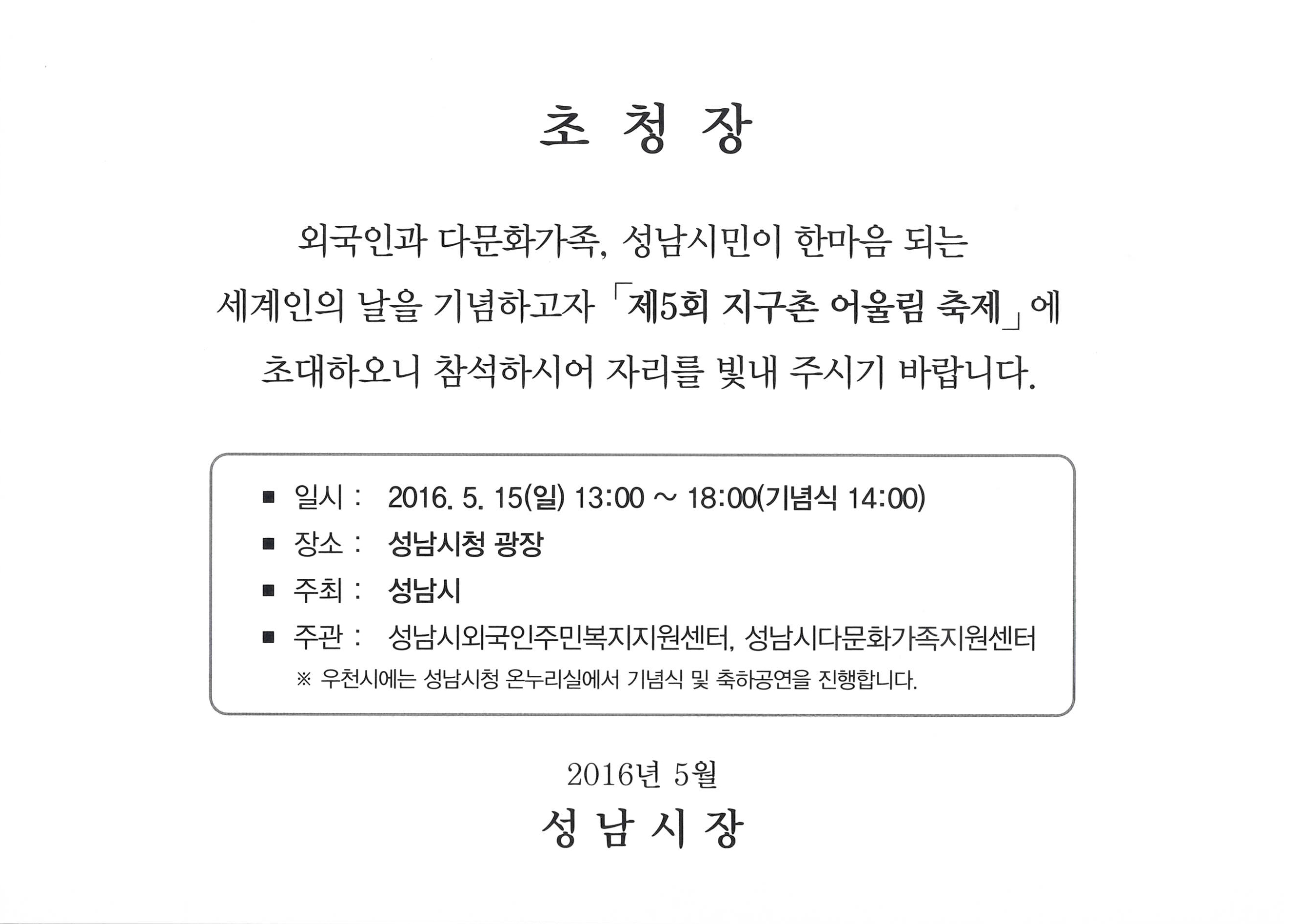 5/15. Á¦5ȸ Áö±¸ÃÌ ¾î¿ï¸²ÃàÁ¦ ¾È³».